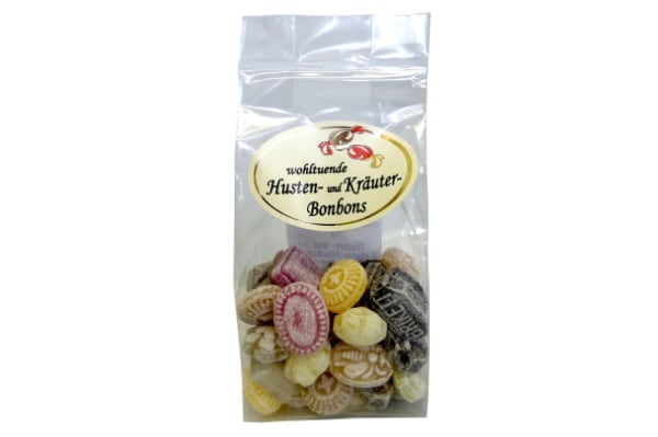 Zucker, Glukosesirup, Salbeiblätter-Tee, Spitzwegerich- Tee, Honig, GERSTENMALZEXTRAKT, Kandisablaufsirup, Karamellzuckersirup, Süßholz-Extrakt, natürliche Aromen und Kräuterextrakte (Eibisch-Wurzel, Spitzwegerich, Salbei, Enzian, Fenchelöl, Pfefferminzöl, Menthol), Aromen (Anisöl, Glühwein-Aroma), Säuerungsmittel Citronensäure, Konzentrate (Karotte, Kürbis, Rote Bete, Apfel, Zitrone, Spirulina, Saflor), Lakritz-Streusel [Zucker, Kakaopulver stark entölt, Lakritzpulver, Glukosesirup, pflanzliches Öl (Kokos, Raps), Ammoniumchlorid, Überzugsmittel, Schellack, Aroma, Emulgator Lezithin].