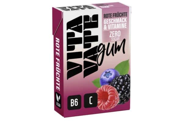 Der Kaugummi ist nicht nur zuckerfrei und vegan, er enthält zudem Vitamin C und Vitamin B6.
